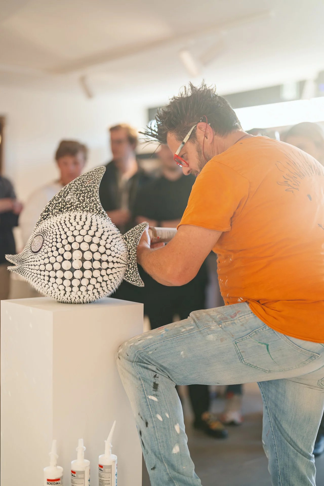 El sábado 22 de junio los amantes del arte tuvieron la oportunidad de conocer en persona a Eddy Maniez. Este intercambio privilegiado permitió a los visitantes hacer preguntas sobre su técnica y escuchar la fascinante historia de la génesis de por qué utilizó la silicona para sus obras de arte. Generoso en compartir y en su visión del arte, crea un vínculo personal con su público.